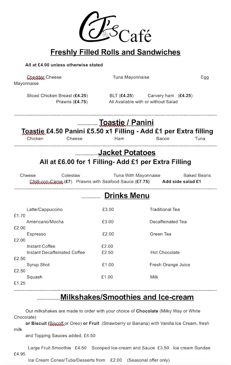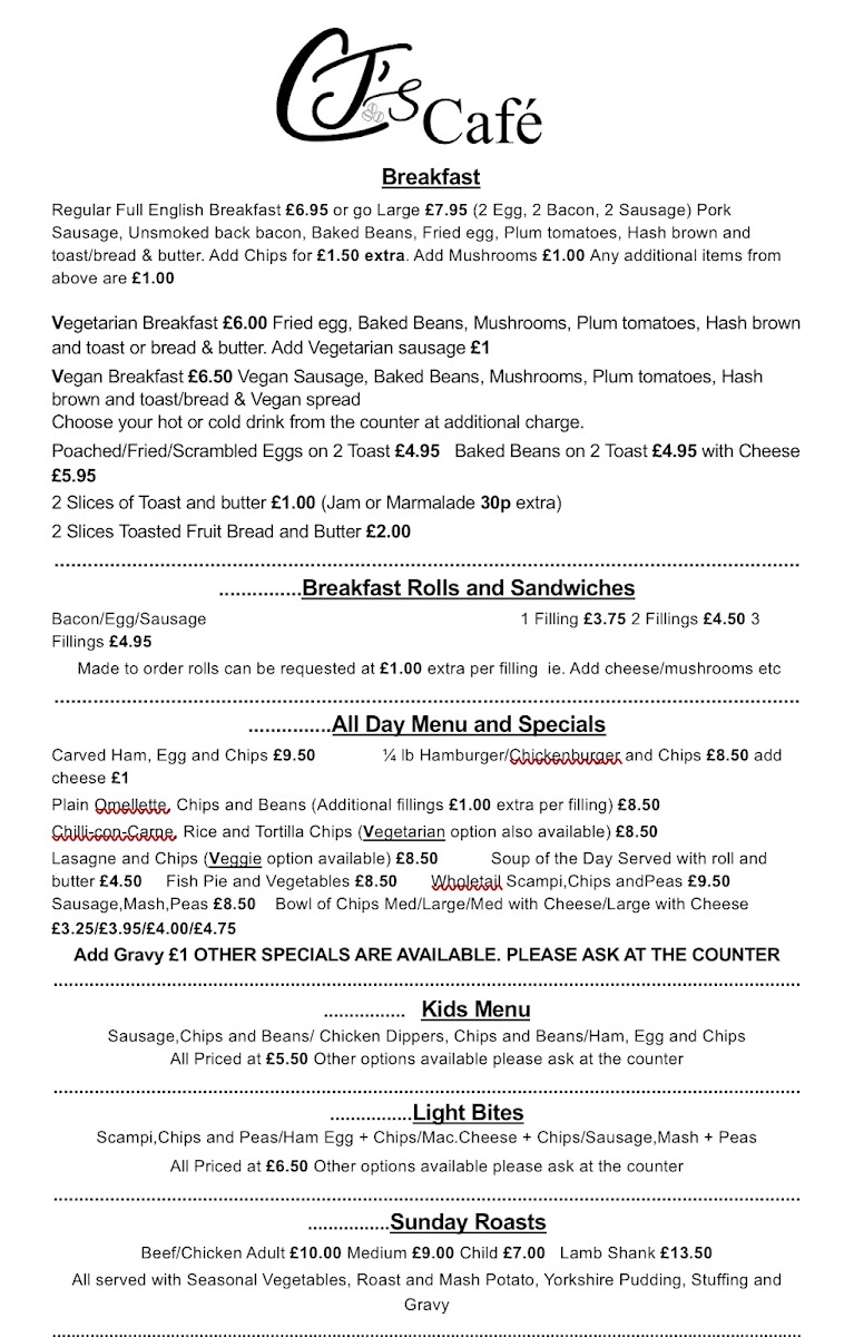 CJ’s Cafe Menu